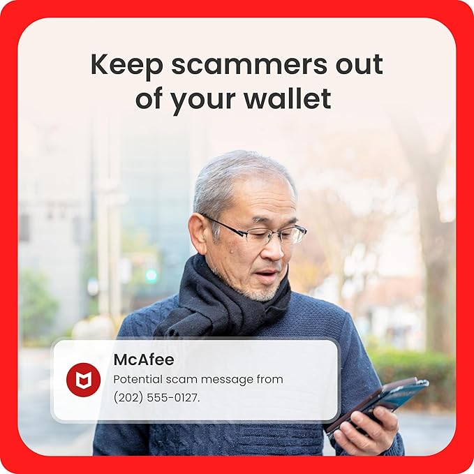 McAfee Total Protection for 5 devices is all-in-one online protection. With our award-winning antivirus powered by AI, you can rest assured that your device is protected from the latest online threats. Our antivirus software is continuously updated to combat emerging malware, viruses, and other malicious software, providing you with peace of mind. Stay ahead of scammers and protect your sensitive information with Scam Detector, also powered by AI. It identifies and alerts you to fraudulent text messages, emails, and even deepfake videos, keeping you safe from financial fraud and misinformation. Enjoy a secure and private online experience with our built-in Secure VPN. It automatically activates when you connect to unsecured Wi-Fi networks, encrypting your internet traffic to shield your personal data from prying eyes. McAfee Total Protection also includes comprehensive identity monitoring, keeping watch over your personal information and promptly notifying you of any data breaches or suspicious activities. Safeguard your online accounts with our password manager, which generates and stores robust passwords for each account, eliminating the hassle of remembering multiple passwords. Our secure browsing feature actively warns you about risky websites and links, preventing you from accidentally accessing malicious sites that could compromise your security. With McAfee Total Protection, you can surf the web with confidence. Get McAfee Total Protection today and secure your digital life against evolving threats. SYSTEM REQUIREMENTS – X64 processors: Microsoft Windows 11 and Windows 10 (RS5) and newer; ARM64 processors: Microsoft Windows 11 and newer; Build 4.23 or higher: macOS 11.x and above;Google Android smartphones and tablets 10 or higher; Apple iOS 16 or later; ChromeOS 102.0.5005 and higher