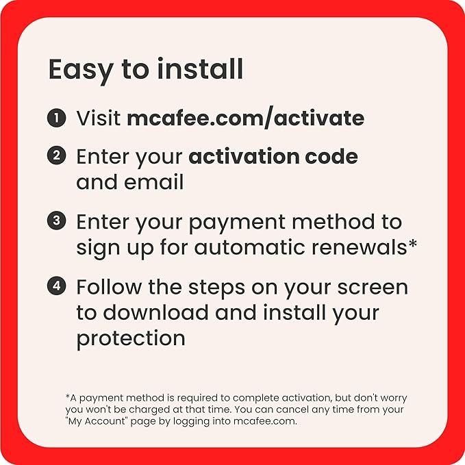 SUBSCRIPTION AND AUTO-RENEWAL NOTICE: Subscription automatically renews annually to provide hassle-free protection. A payment method is required to complete activation, but don’t worry, you won’t be charged at that time.